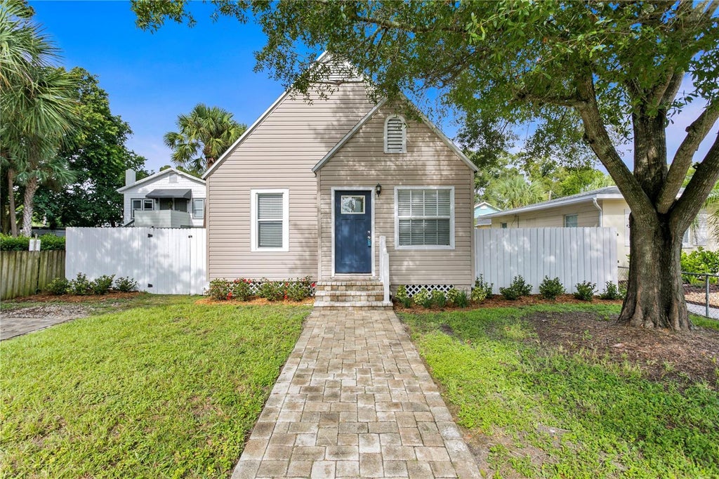 Discover the allure of this impeccably updated "Vintage Modern" Bungalow, situated in the heart of a thriving downtown St. Petersburg neighborhood. The exterior exudes charm with its brick paver driveway and walkway, complemented by a fenced in yard and a ton of curb appeal. Inside, an open floor plan is illuminated by natural light, highlighting the refinished hardwood floors that extend throughout. The front porch has been ingeniously transformed into a cozy reading nook, complete with a window seat, built-in shelving, and storage. The spacious living room seamlessly connects to a fully remodeled chef's kitchen, featuring soft-close cabinetry, quartz countertops, a range hood, stainless steel appliances, and a glass and vintage tile backsplash. Adjacent to the kitchen, a versatile bonus room serves as an ideal space for dining or a home office, equipped with a large laundry closet and new French doors that open to a fully fenced backyard. This inviting home that includes two rooms and a beautifully renovated hall bath. The backyard is perfect for entertaining, with a lovely paver patio, a detached garage accessible via an alley, and ample room for RV or boat parking. Additional upgrades include 8-inch baseboards, recessed lighting, board and batten accents, with a new roof in 2018, a new A/C system and ductwork in 2019, a new gas line and gas water heater in 2019, a new paver driveway and patio in 2019, new fencing in 2019, updated plumbing supply lines, electrical updates, and new interior and exterior doors in 2019. Come and feel how inviting and charming this beautiful bungalow is for yourself!