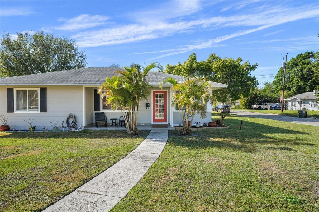 Charming Mid-Century Cottage selling turn-key and fully furnished. No HOA, No CDD, Not in a Flood Zone! Currently an Air BnB, this cutie pie features an open living room and dining area, 2 bedrooms plus an adaptable flex space offering the option of a 3rd bedroom, a home office, or a workout space. The bathroom has been tastefully updated from head to toe and features a tile shower, modern vanity and new light fixture. The bright sunny kitchen has a pantry, open shelving, and all the modern conveniences included, plus access to the fenced-in backyard, which has plenty of room for a pool. A full-size washer and dryer, plus a deep lockable linen closet or owner’s closet complete the package. Situated on a picturesque corner lot with off-street parking, this property has the advantage of being located outside of the flood zone, offering peace of mind to its lucky owner. Roof replaced in 2015; HVAC system in 2019. This is the perfect opportunity for a seamless move-in experience for anyone who is relocating; wanting a second home completely furnished; a first-time buyer just starting out; or an enterprising entrepreneur ready to capitalize on all the advantages of income property.