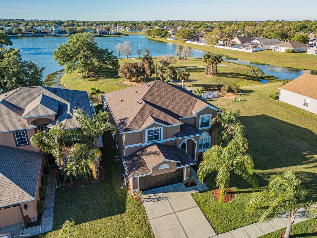 Stunning pool home located in the Bridgewater community, and nestled on a premium lot with breathtaking views. This 6 bedroom 3 bath home is beautifully upgraded and offers a unique blend of convenience and privacy. The 36 inch ceramic tile all throughout the first floor, window treatments all throughout the home, and updated kitchen all give this property a modern and elegant atmosphere. The outdoor space is perfect for entertaining at the outdoor bar and enjoying the amazing views of the trails and water from every angle. The new roof installed last year and the new HVAC systems installed this year, will ensures peace of mind and optimal comfort. The property is located within walking and biking distance to the elementary, middle, and high schools. Looking for entertainment, dining, and shopping; this property is located within close vicinity to the Epperson Ranch Lagoon, Krate at the Grove, Wiregrass mall, and get to the Tampa Premium Outlets within minutes, using the new overpass that gives access to I-75. This home offers the perfect combination of upgrades, location, privacy, and views. Schedule a tour and experience how amazing this property truly is.