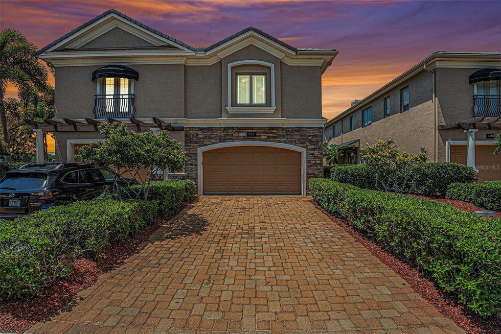Discover in the heart of Carillon Park the epitome of luxury and serenity with this stunning Mediterranean townhome in the prestigious gated community of Saxony Place. Built with meticulous attention to detail, this residence is perfect for the discerning buyer seeking quality and value. Located within reach of all things amazing and fun in the Tampa Bay area. Step inside this exquisite home with designer finishes and an accommodating floor plan with just the right mix of formal and open to fit the modern lifestyle. The chef's kitchen is equipped with top-of-the-line stainless steel appliances, double built-in ovens with cooktop, and elegant hardwood cabinets. The granite counters and large island with wine fridge make this kitchen a true centerpiece, complemented by loads of counterspace and a spacious bar that overlooks the living area. Entertain in style in the formal dining room with chair rail, accent wall and sleek chandelier. The floor plan sets this home apart from others letting it feel much more like an estate than a townhome, offering a harmonious blend of functionality and elegance. High ceilings adorned with crown molding and bullnose corners enhance the grandeur, while designer details provide a touch of luxurious charm. Cozy up by one of the two fireplaces or enjoy the beautiful easy to maintain tile floors that flow throughout the living spaces. The Florida Room, a true highlight of this home, offers tranquil views of the lake, fountain, and conservation creating a perfect retreat for relaxation by yourself or with friends. Upstairs you are greeted by the Primary fit for royalty with an attached office that makes every workday feel like a holiday. There is an even grander ensuite Primary bathroom with glass shower, tub and dual sinks. The secondary bedrooms are large and inviting with ensuite bathrooms, your guests may never leave! Whether you are looking for a second home in the sun or a place to make into your own personal oasis. Come see why St Petersburg and Tampa Bay is the top of all the real estate lists. This is home.