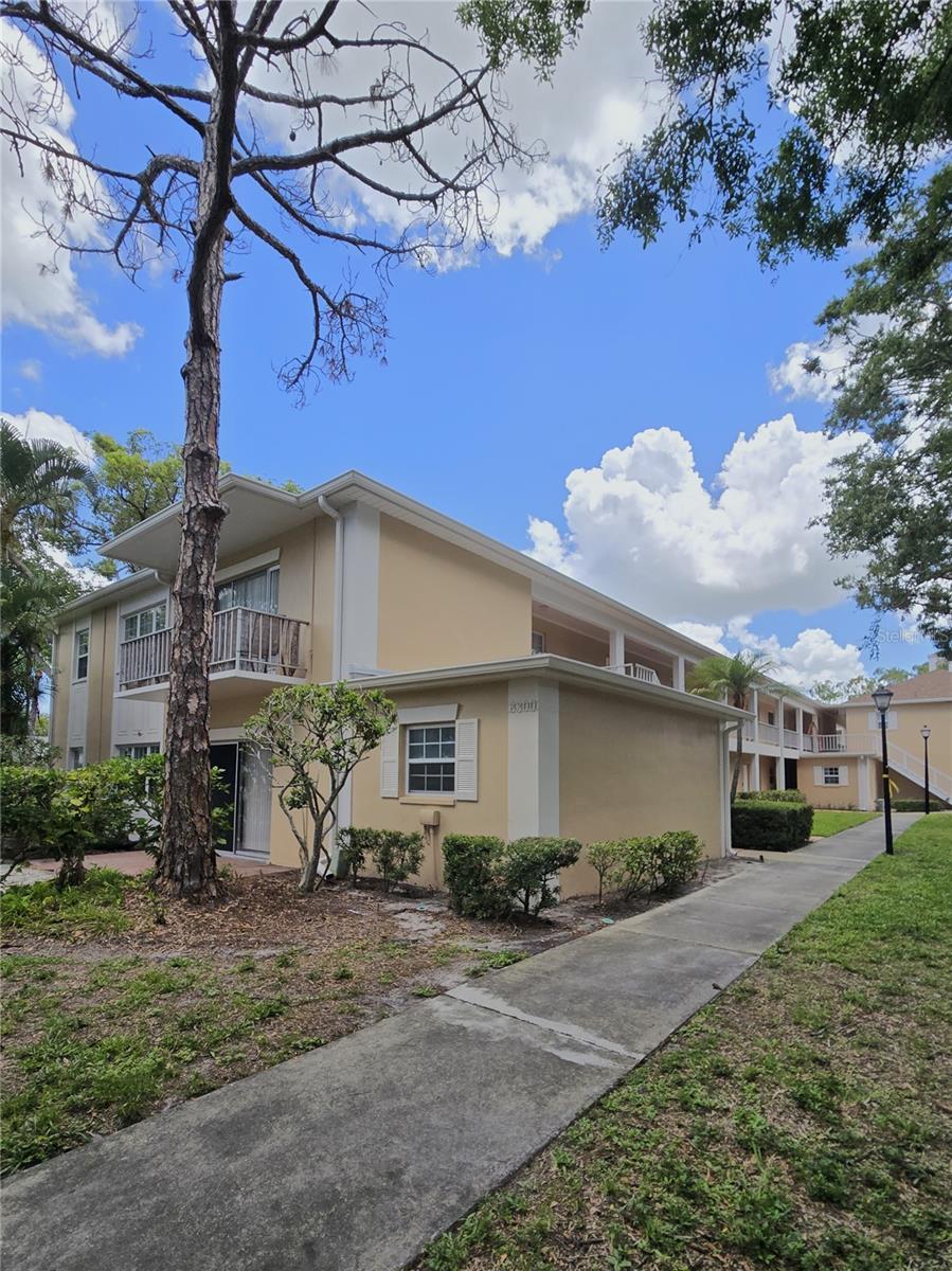 Welcome to Chateaux De Bardmoor! Now is your opportunity to purchase this 2 bedroom 2 bathroom first floor corner unit which comes with its own private garden, patio space and an exclusive covered carport! Building #6 has one of the lowest HOA fees in the community. The $540 HOA fees include cable tv, internet, water, sewer & trash, the community pool, building maintenance, grounds care, exterior pest control, exterior insurance & reserves for future roofs, painting, paving & stairwells.is a 2 story condo building and is located across the street from the community pool and laundry facilities. The community roof was replaced in 2024 and the exterior was freshly painted in July 2025. Freshly painted, this condo has been fully updated with new lighting & fans throughout (2025), a newer a/c (2021), new tile flooring in the kitchen, hallway & baths, luxury vinyl plank in the living room and bedrooms. The kitchen has quartz counters, newer cabinets, a smart home sensor faucet, recessed can lighting, under cabinet lighting, disposal and a full set of kitchen appliances. Both bathrooms have newer lighting, faucets and vanities. The guest bathroom remodel includes a frameless glass walk-in tiled shower with a niche. Each condo has its own dedicated storage space in the community storage closet. Book your appointment today!